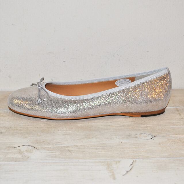 ボロネーゼ製法のフラットシューズ。包み込まれるような心地よい足入れが魅力の1足。トレンドのメタリック素材が、カジュアルにもエレガントにも仕上げてくれます。