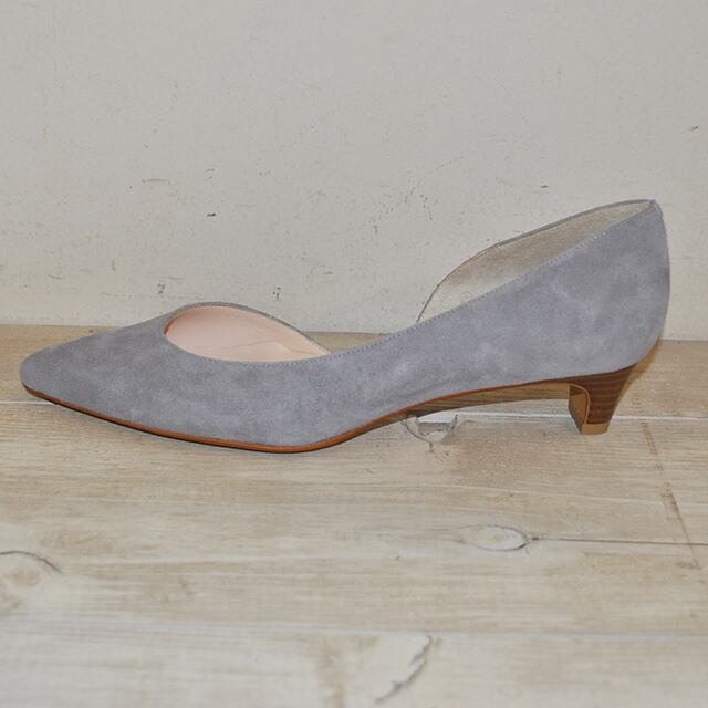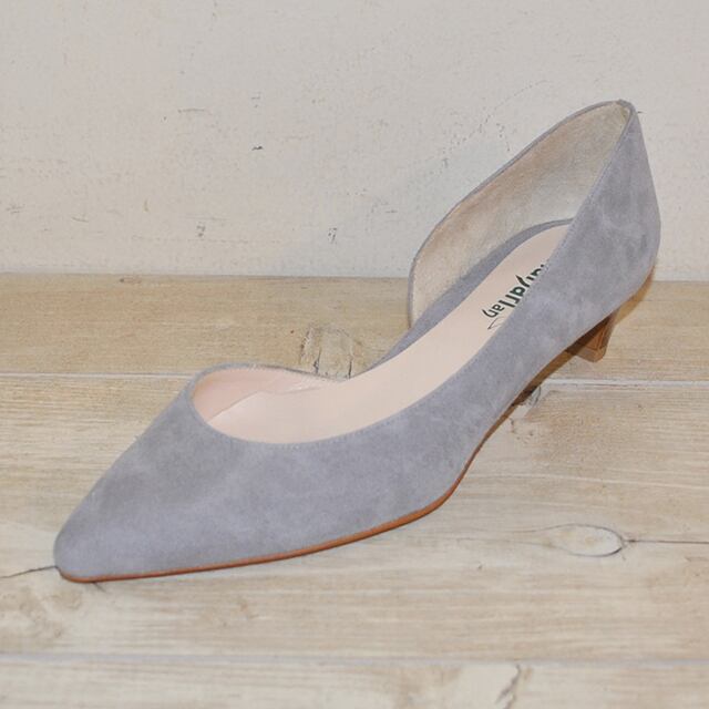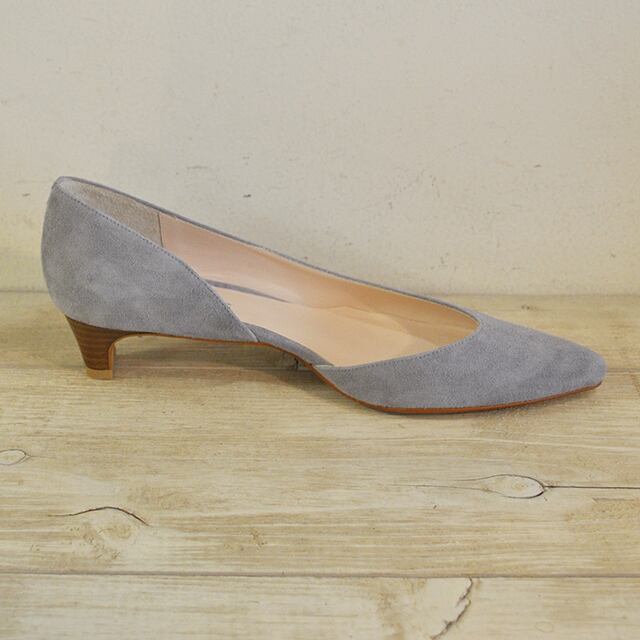 土踏まず部分のカットが女性らしいパンプス。程良いポインテッドトウが上品です。柔らかく足当たりの良いスエード素材、3.5cmの低めのヒールがとても履きやすいです。MADE IN JAPANのボロネーゼ製法です。