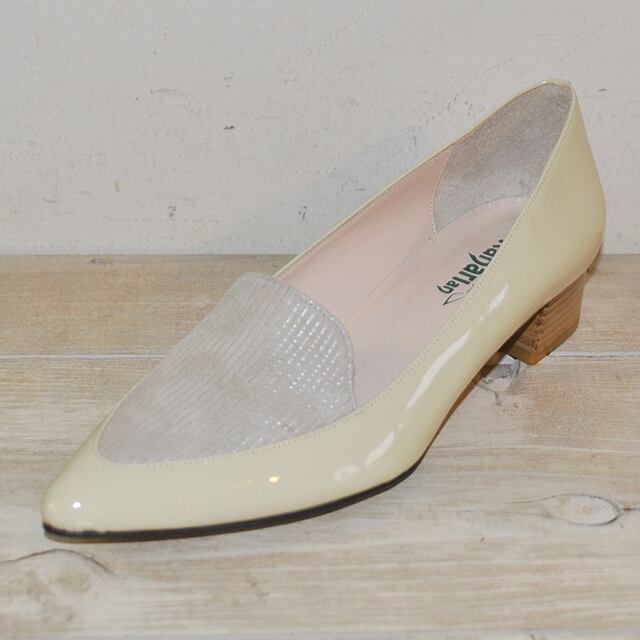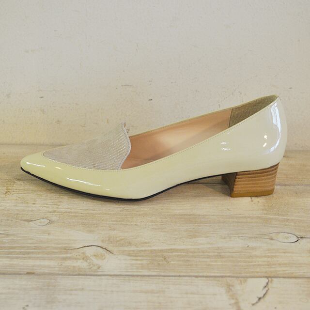 Kanarian STRIPE SUEDE×PATENT COMBI PUMPS KK1113A BEIGE