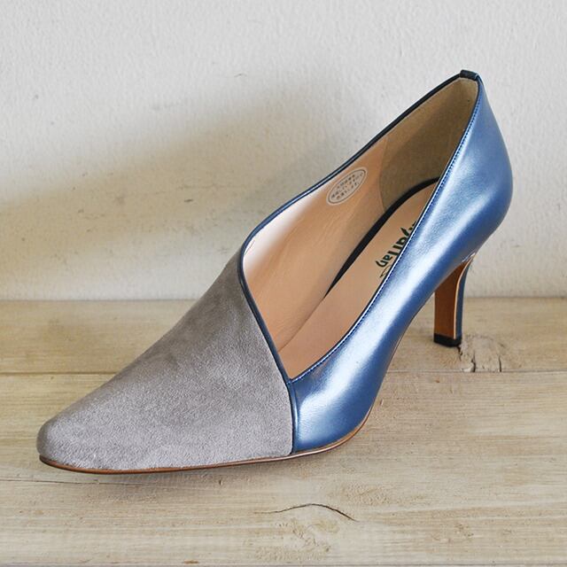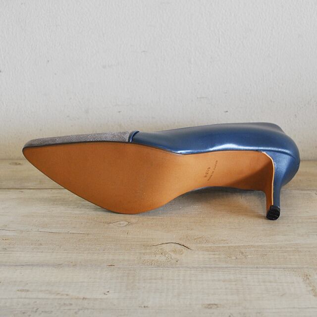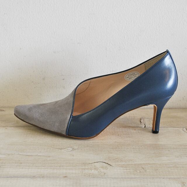 袋状の縫製が優しく足を包みこんでくれるボロネーゼ製法のパンプス。独特のカットラインとスエード×スムースのコンビが存在感あるタイプです。7cmヒールが脚をすっきりと見せてくれるので、スカートでもパンツでも合わせやすいです。ブーティーのように甲部分が隠れるデザインです。
